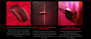 Bobotnya hanya sekitar 54 gram, menjadikannya salah satu mouse gaming nirkabel paling ringan di dunia. Desain barunya tampak lebih elegan dan kalem dibanding generasi sebelumnya, namun tetap mempertahankan DNA khas Razer dengan logo ikonik berwarna hijau di bagian belakang.